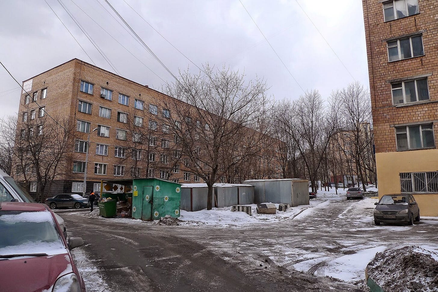 In Moscow, we lived on the 3rd floor of an apartment building with an old-fashioned elevator that often got stuck between floors. The entryway stank of booze and piss from homeless veterans who would pass out inside the doors.